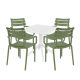 Create a stylish and comfortable dining experience with the 4 Seater Sky 80x80 Table in White and Paris Chairs in Green. Whether you're enjoying a meal with family or hosting a small gathering, this set offers the perfect combination of durability, versatility, and aesthetics. The weather-resistant construction and UV protection ensure that this dining set will withstand the test of time, while the knock-down table and stackable chairs add convenience to your space. Elevate your dining area with this exceptional set that seamlessly blends functionality with contemporary design.