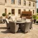 Our Boston 6 seat dining set is ideal for the larger gathering of family and friends. One of the great joys of our short summer is having meals in outdoors even if it is only a cup of tea in the morning. Now the days are getting warmer it is the perfect time to invest in your patio for the summer entertaining that is to come, even if you have a little terrace or a sprawling outdoor BBQ or dining area. Our Boston 6 seat round dining set is made using PE (polyethene) rattan that will withstand the outdoor elements. It can handle humid or damp conditions and is UV resistant. ECO-friendly PE can be recycled so is kind to the environment. The PE rattan is woven over a powder coated aluminium frame and will not rust.