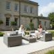 Created by Outdoor Living, this set has a modern design that will improve any garden, patio, or outdoor lounge area. The Elara set includes two roomy armchairs, a three-seater sofa, and a rectangular coffee table, all made with high-quality rattan material. The grey color scheme adds a touch of style, making it a versatile fit for various outdoor looks.