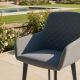 The Galaxy Chair in Light Grey is an elegant seating option. The armrests make this chair extra comfortable. These chairs are highly durable, weather resistant and UV protected. They are lightweight and easy to move. The aluminium frame on the chairs will not warp, peel or crack. They are very easy to maintain, requiring only an occasional wipe down with a wet cloth.