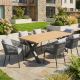Create a stylish and practical outdoor dining area with the Palm 180cm Teak Effect Rectangular Dining Set with 6 Camilla Grey Chairs. Combining a warm teak-look tabletop with contemporary dark grey seating, this set suits both modern and traditional garden spaces.