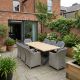The combination of the sleek aluminium table and the warm rattan chairs creates a balanced look that works well against brickwork, greenery, and paved areas. Designed for both everyday use and hosting larger groups, this set offers durability, space, and comfortable seating throughout the seasons.