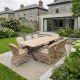 The contrast between the teak-effect tabletop and the beige rattan chairs gives this set a balanced finish that works well in both traditional and contemporary outdoor settings. Designed for everyday use as well as entertaining larger groups, it offers practical features, comfortable seating, and reliable construction.
