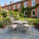 Constructed from cast aluminium, the set is designed to be both durable and easy to handle. The material is naturally resistant to rust, allowing it to remain outdoors throughout the seasons with minimal maintenance. The Sahara finish brings a soft, neutral tone that works well with greenery, stone patios, and lighter outdoor settings.