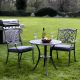 Cast Aluminium MaterialsConstructed from cast aluminium, this bistro set is built to endure the elements without succumbing to rust or decay. This material choice ensures that your set remains low-maintenance while retaining its visual appeal through the seasons.